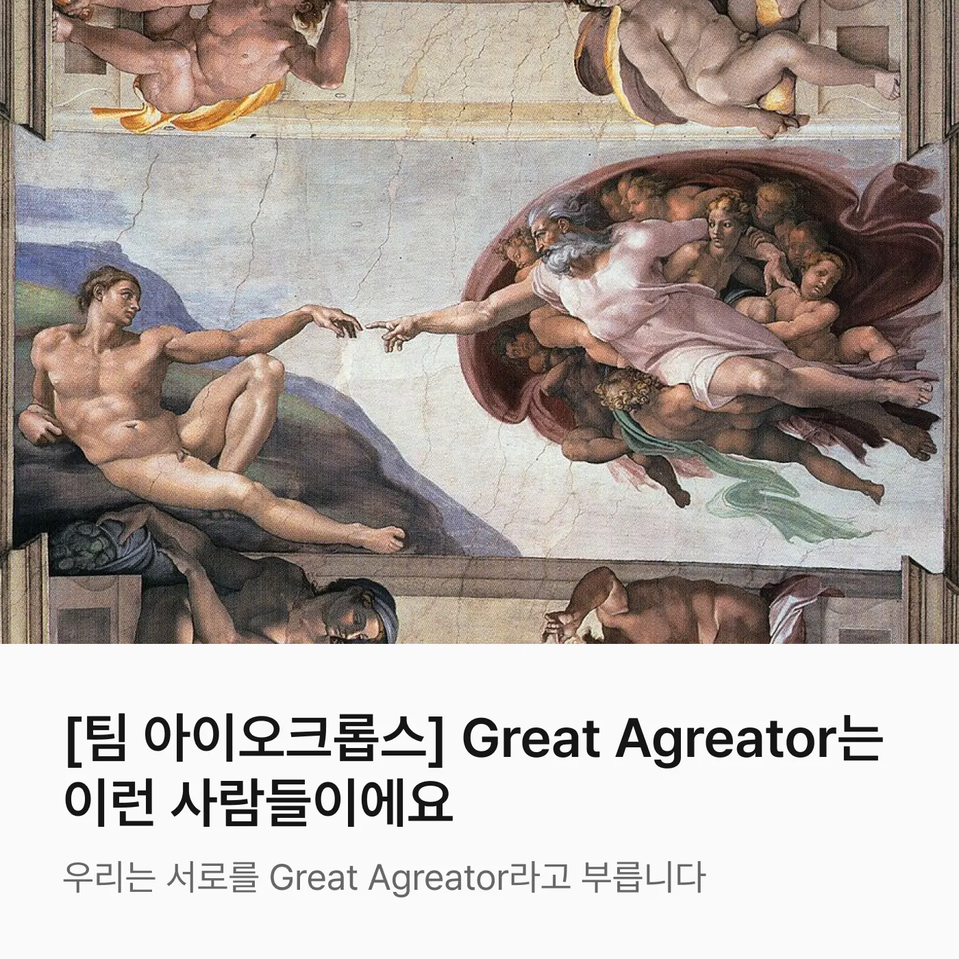 무섭게 성장하는 Great Agreator 들의 도전에 동참하세요.