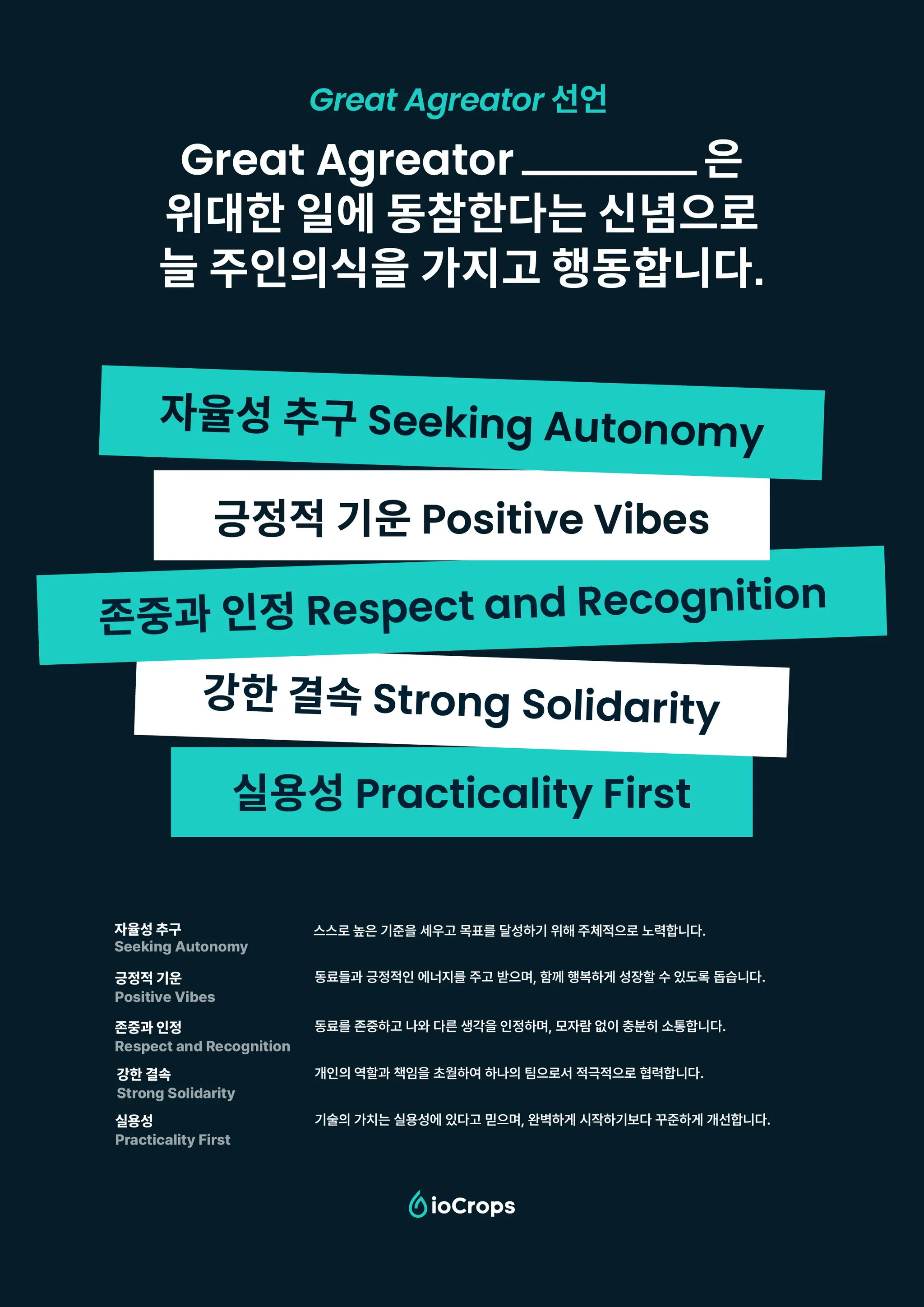 아이오크롭스는 농업전문가와 IT 개발자가 모여 ‘농업의 혁신’이라는 같은 비전을 그리는 기업입니다.